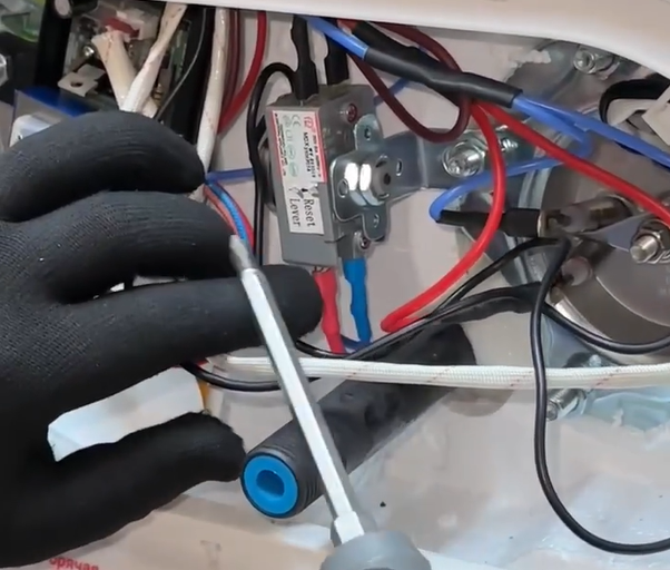 Для замены такого ТЭНа не требуется сливать воду или демонтировать бак — операция выполняется быстро и с минимальными трудозатратами. Система управления, включая блок питания для дисплея, выполнена аккуратно, с качественной изоляцией.