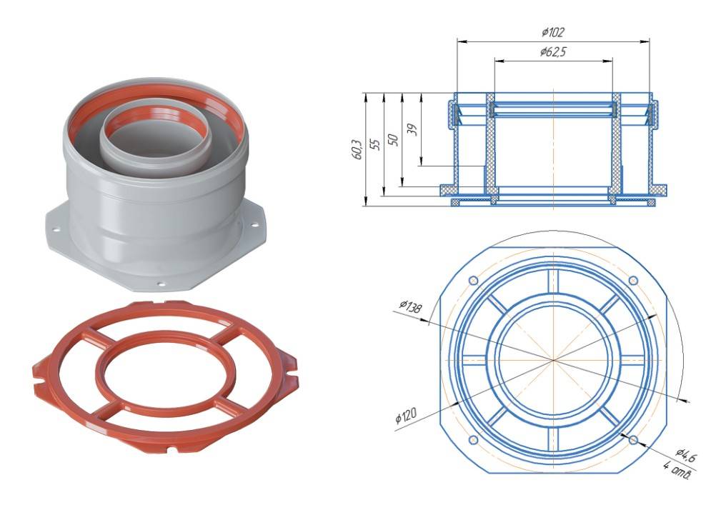 Адаптер вертикальный коакс. 60/100 (Immergas)