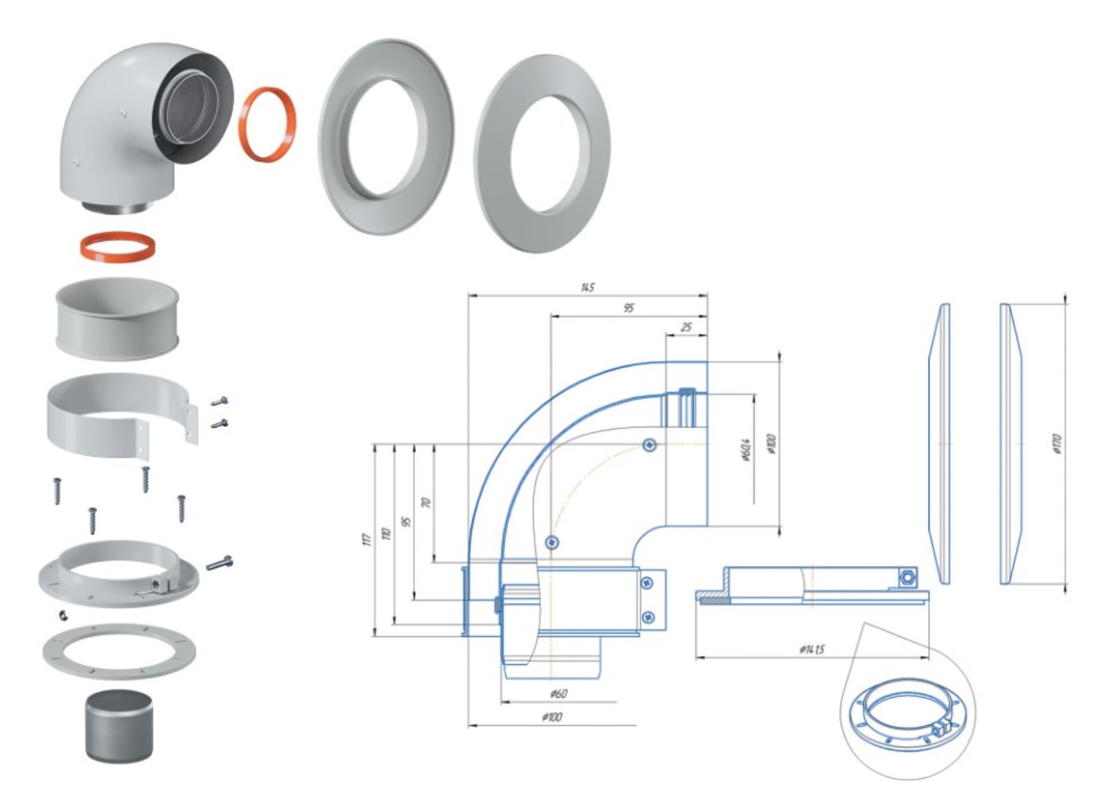 Отвод коаксиальный универсальный 60/100 (кроме Immergas и Navien Deluxe 75/100) KRATS (K-01)