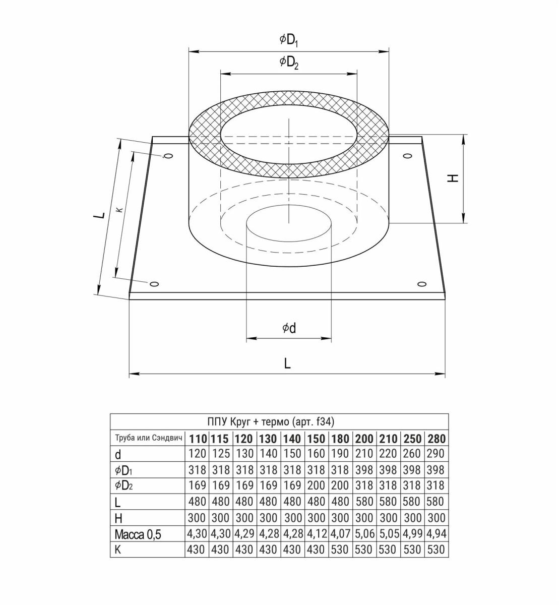 Потолочно-проходной узел (430/0,5 мм + термо) 210 (FERRUM)