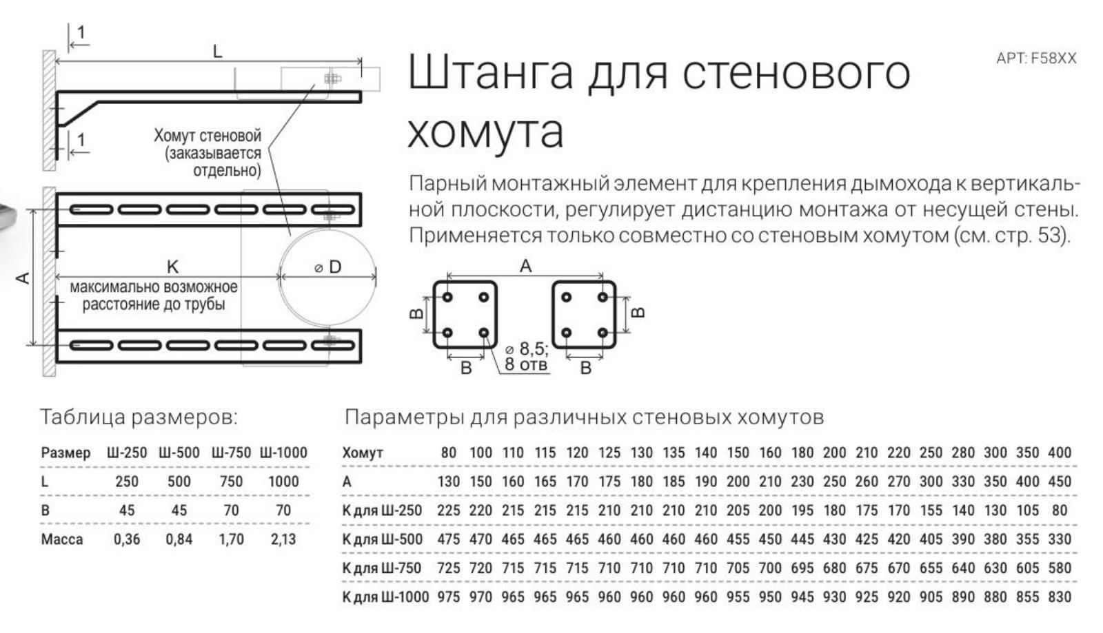 Штанга для стенового хомута L1000 (FERRUM) (2шт)