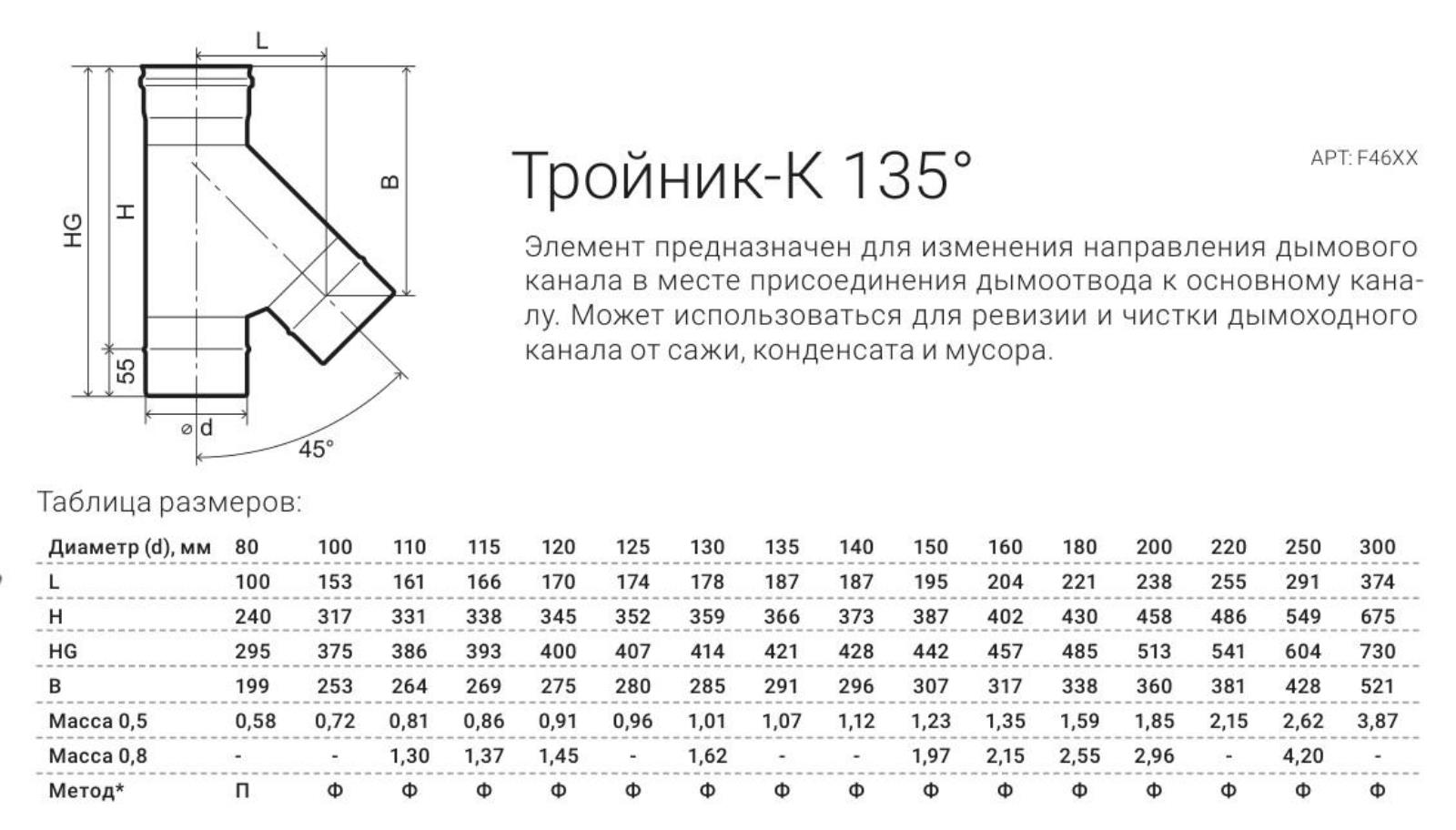 Тройник 130*45 гр. (430/0,5мм) (FERRUM)