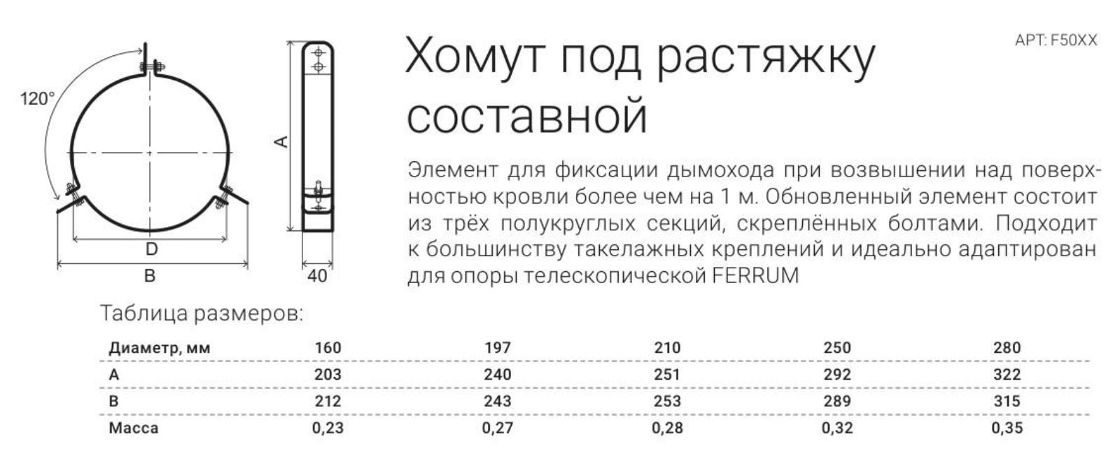 Хомут под растяжку составной (430) Ф197 FERRUM (f5042)