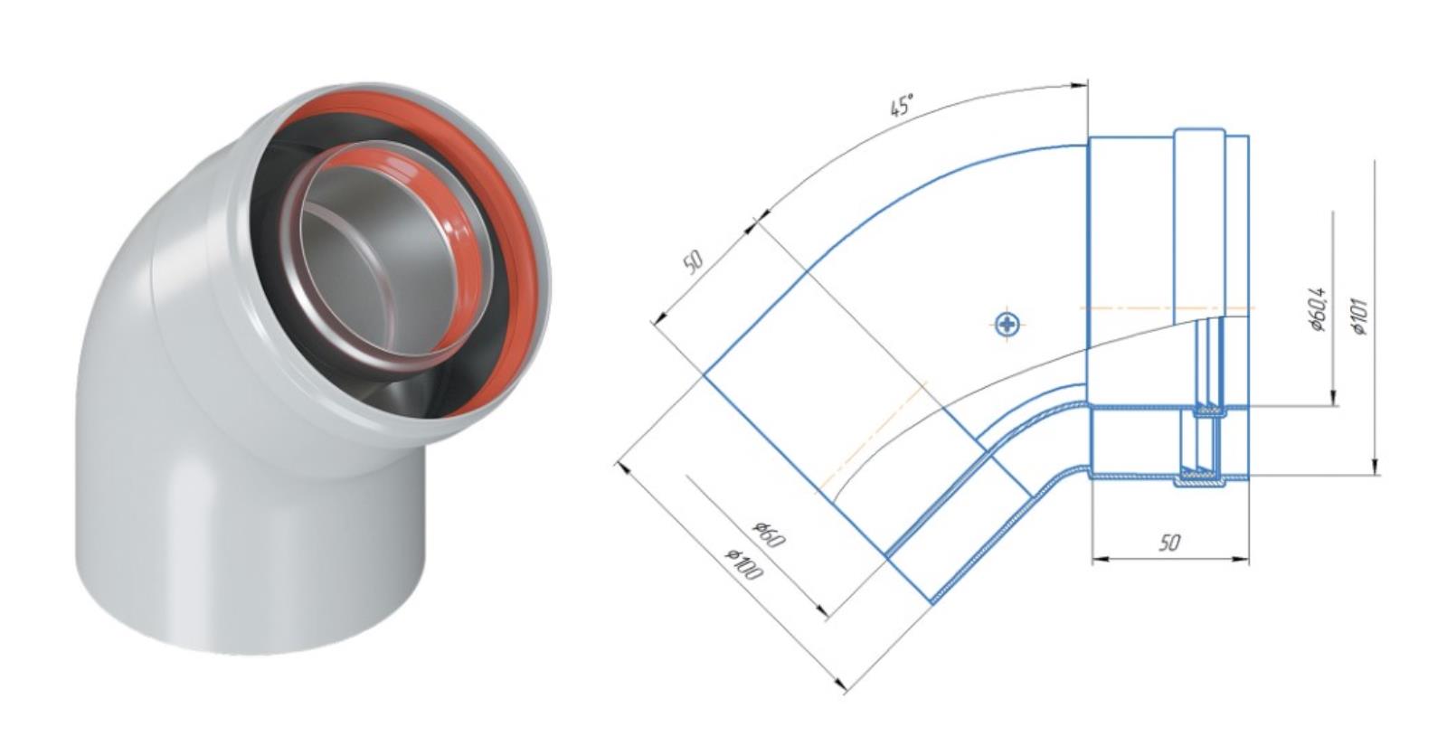 Отвод KRATS D 60/100 45 гр. CW-45-01