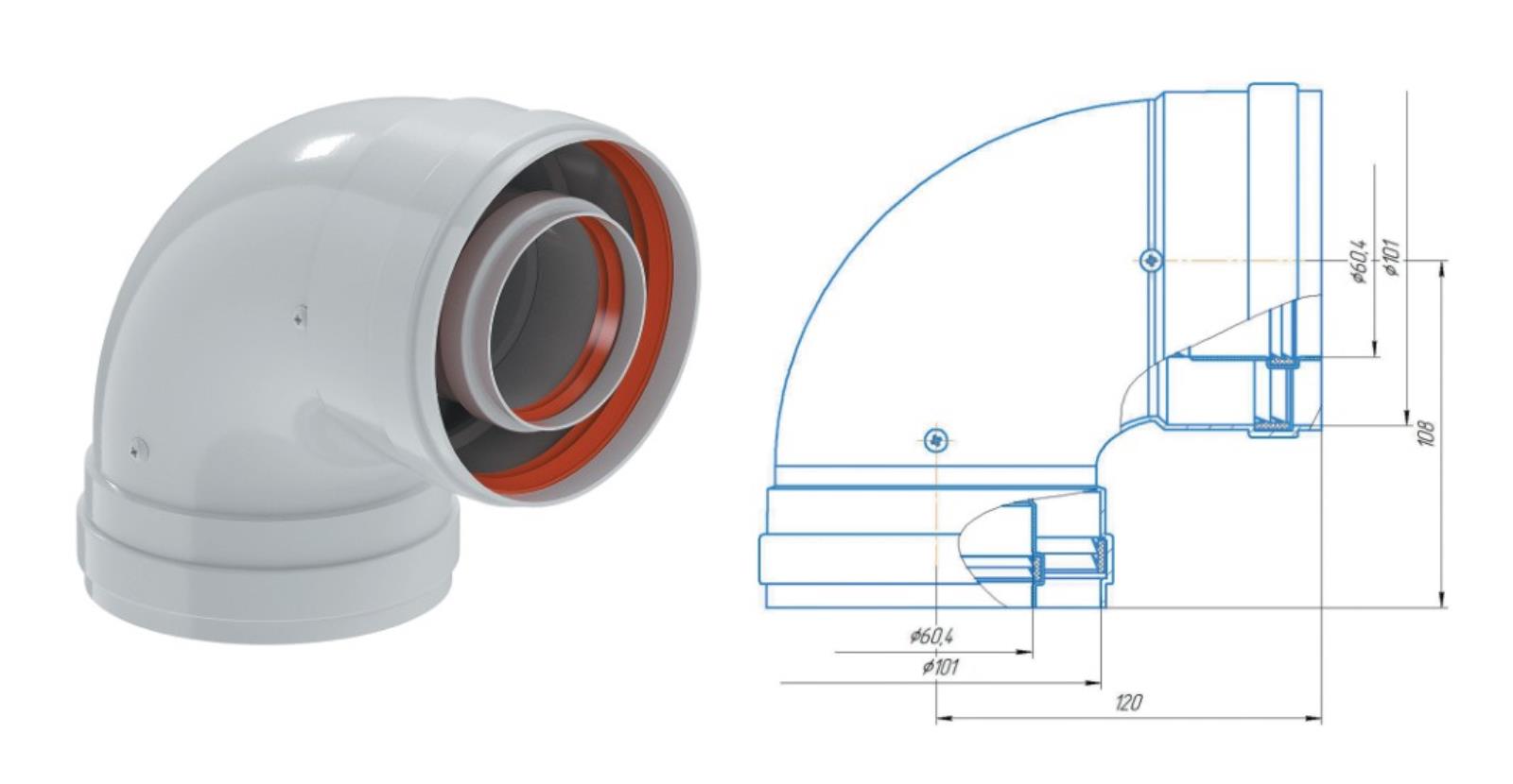 Отвод промежуточный раструбн. 90 гр. 60/100 (мама/мама) KRATS (CW-90-04)