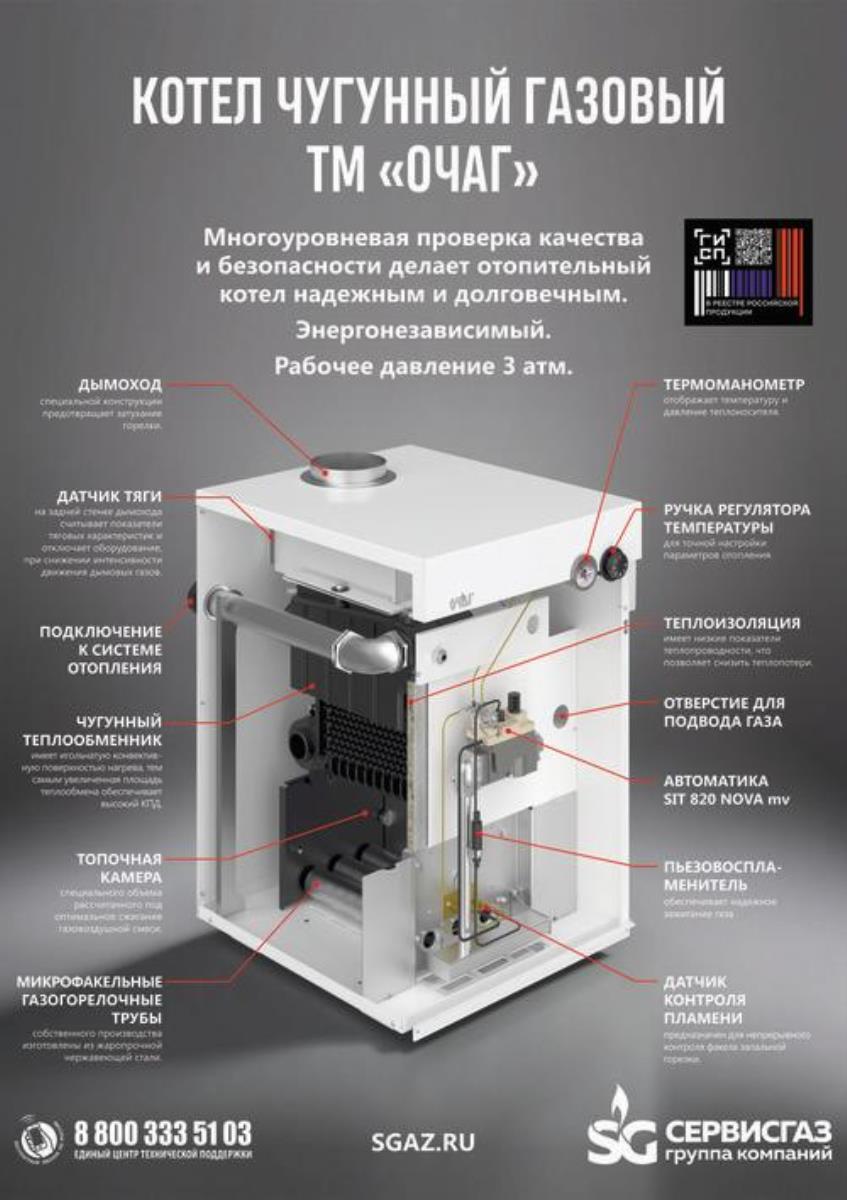 Котел чугунный 1-контурный КЧГ- 40 E «Очаг» (SitNova-820)