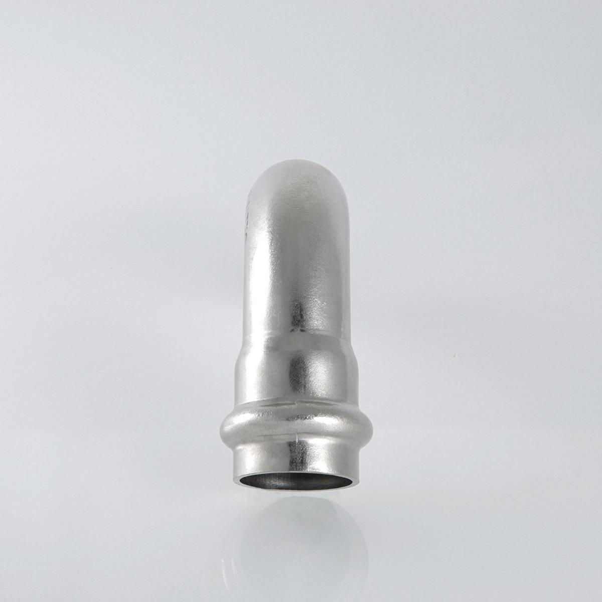 (VTi.950.I) Однораструбный пресс-угольник из нержавеющей стали обеспечивает соединение тонкостенных стальных труб систем водоснабжения, отопления, иных инженерных и технологических установок с рабочей температурой до 120 °С и давлением до 16 бар. Изделие изготовлено из стали AISI 304. Материал уплотнительного кольца – эластомер EPDM. Отдельно можно приобрести уплотнительные кольца из FPM (витон); в этом случае максимальная рабочая температура увеличивается до 140 °С. Фитинг VTi.950.l – угольник для соединения труб под углом 90°. Благодаря бесштуцерной конструкции соединитель обладает малым коэффициентом местного сопротивления – сужение канала практически отсутствует. Фитинг рассчитан на обжатие с помощью пресс-инструмента V-профиля.