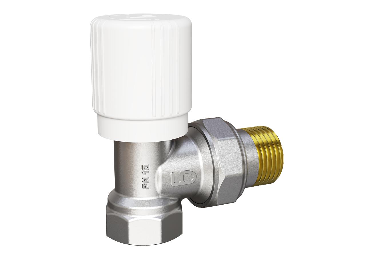 (VT.007.LN) Угловой компактный (облегченный) радиаторный клапан. Основное назначение – ручное плавное регулирование расхода теплоносителя через отопительный прибор. При замене регулировочной ручки на защитный колпачок может использоваться в качестве настроечного клапана. Наличие полусгона позволяет монтировать и демонтировать клапан без демонтажа трубопровода. Ремонтопригодный. Рабочая температура – до 110 ºС, давление – до 10 бар. Резьба присоединений – внутренняя/наружная.