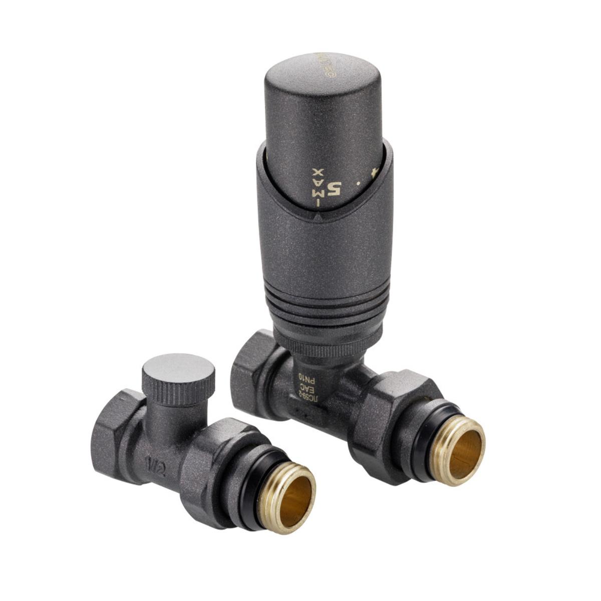 Терморегулирующий комплект для радиатора, прям. 1/2" (термоголовка, клапаны) СЕРЫЙ VT.046.GR.04