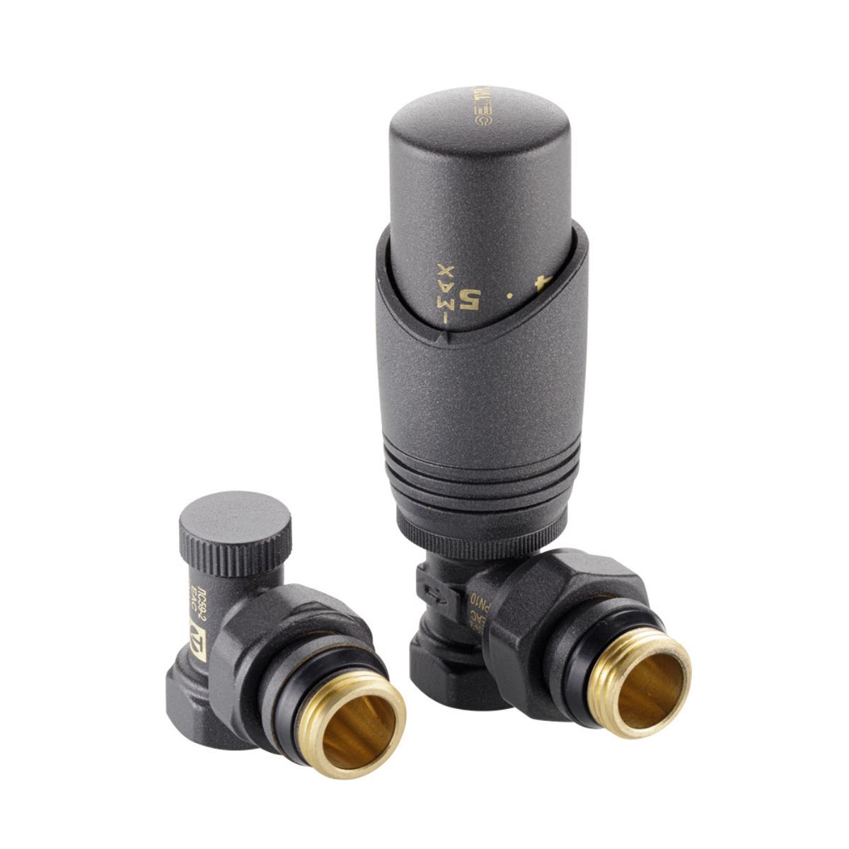 Терморегулирующий комплект для радиатора, угл. 1/2" (термоголовка, клапаны) СЕРЫЙ VT.045.GR.04