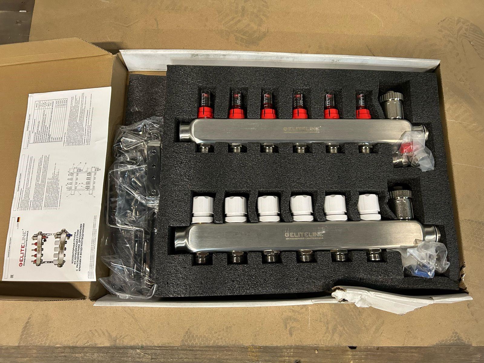 Коллекторная группа(нерж.сталь)6 вых.1x3/4"расход., дренаж.клапан, авт..воздухоотв. ELITELINE (EL-KGS002-1" х 6 WAYS)повр.упаковки