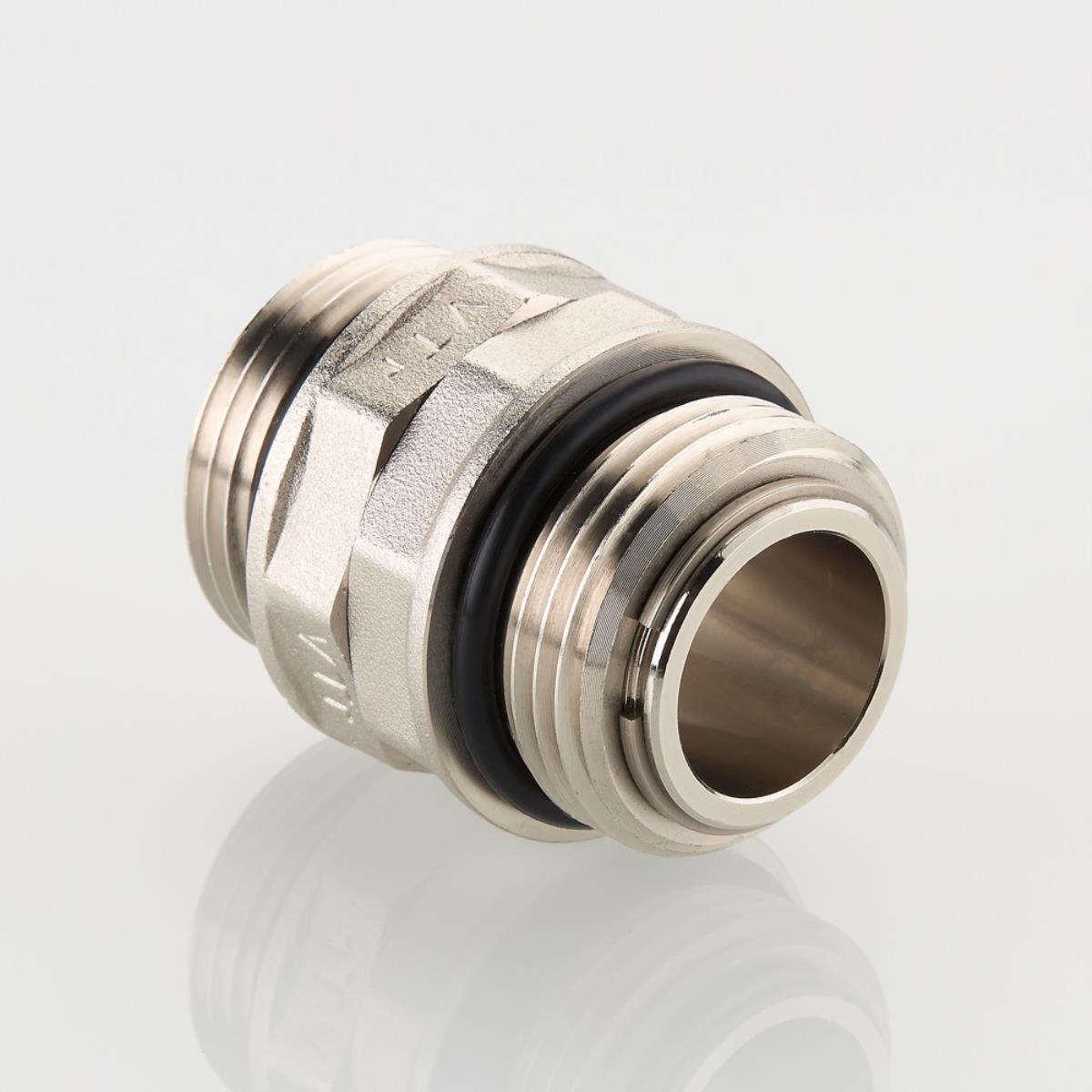 (VT.0606.0) Сдвоенные ниппели VALTEC предназначены для соединения коллекторных блоков VTc 594 EMNX и 596 EMNX между собой, с насосно-смесительными узлами COMBI и DUAL, байпасными группами VT.0666, 0667, 0668. Ниппели условным диаметром 1 1/4" используются для соединения между собой модулей быстрого монтажа VARIMIX. Состоят из двух латунных никелированных резьбовых патрубков, соединенных между собой с помощью пружинной фиксирующей шайбы, что позволяет патрубкам вращаться относительно друг друга. Уплотнение – двумя кольцами из резины EPDM. Дополнительных герметиков не требуется. При монтаже коллекторных фитингов используйте ключи VALTEC.